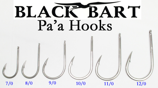 The 10/0 Pa'a hooks are totally awesome! They seem to penetrate the upper jaw of the big ahi like "butter" and once in the hooks are Pa'a (stuck) like their name, only a line or leader cut can cause a lost tuna. These will be the only hooks I will ever use in my lures!