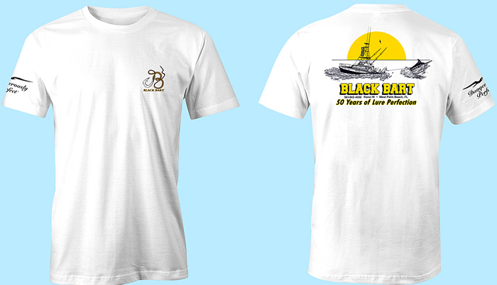 Re-creation of Capt Bart "Original" T-Shirt Design. What better way to celebrate 50 years of lure making then to go back to where it started. Beautiful Hi-Detail Design of the Black Bart Backing Down on a Monster.