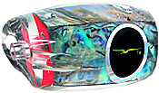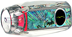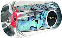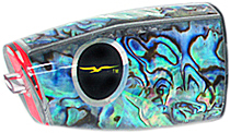 My bid for the best Wahoo lure on the market. Hex shaped rear body, with a smooth flowing mid body, bullet nose. Heavy insert covered with jewelry quality Abalone shell. Best trolled fast and from the riggers, or flat. Wahoo can't resist this bite sized fish candy, and that goes for all of the other fish on the edge. Rig with 10/0 hooks.
