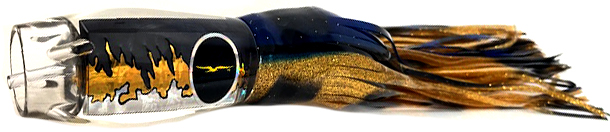 Brazil ProJet custom black-gold-silver accents head. Skirted yellowfin tuna over silver-gold-black. (YFT/SGB)